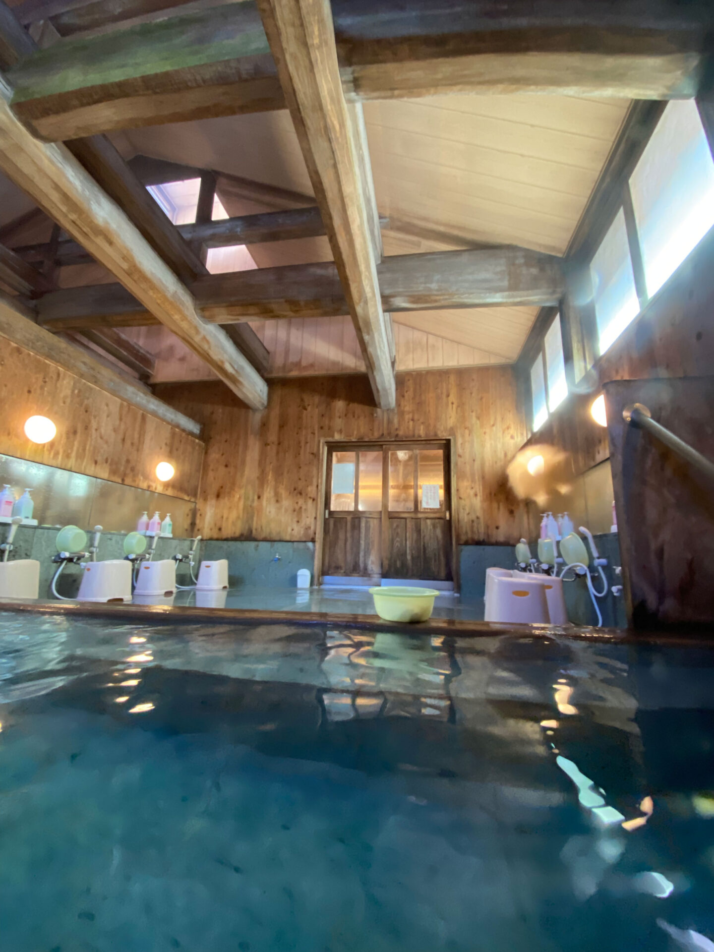 こんな感じで安価な温泉としては悪くない広さと、歴史のありそうな雰囲気です。