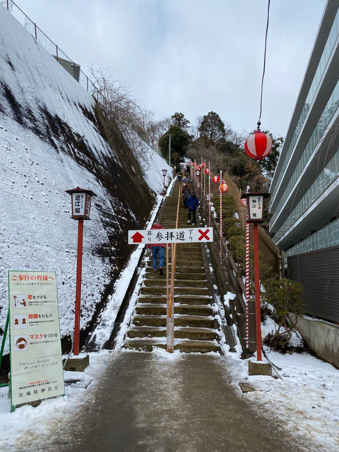 愛宕神社は宮城県仙台市太白区向山にある仙台でも有名な神社です。この正月に行くのは混雑で無謀かと思ったのですが、意外にもガラガラと言っても良い状態で参拝できました。