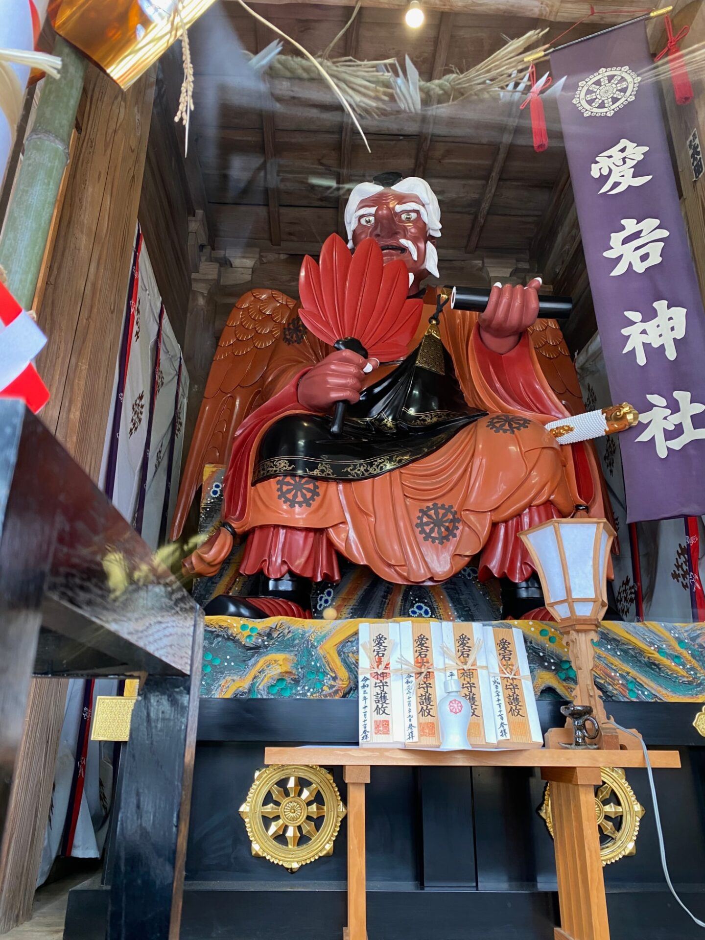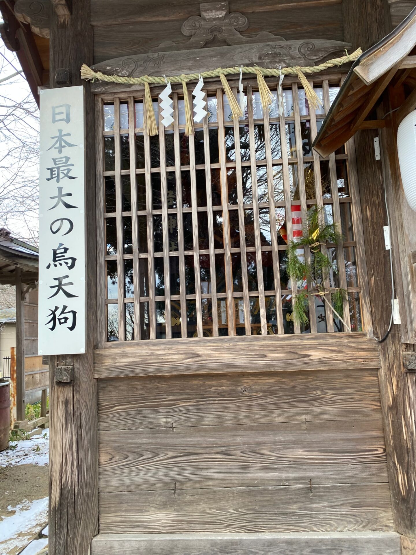 こちらは日本最大の鴉天狗と書かれてますが、先ほど同様にガラス反射で全く見えませんでしたので、iPhoneのカメラレンズをガラスに近づけて内部を撮影。