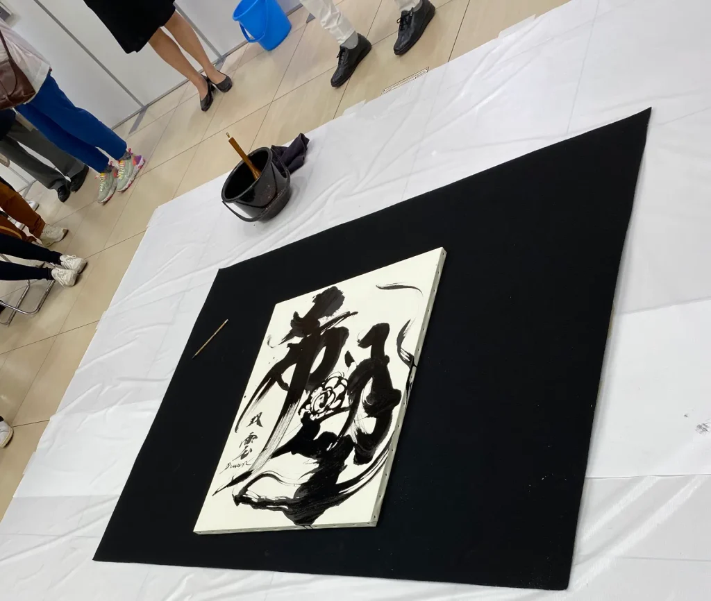 ミニ講演会モードだったのが、気分が乗ってきたという感じで唐突に書道家モードに入ったのですが、でもその際も冗談言いながら、使い古した筆とのコミュニケーションをとりながら、筆の劣化具合?特性?によって生じたかすれた様子を最高だと喜びながら書く姿が印象的でした。