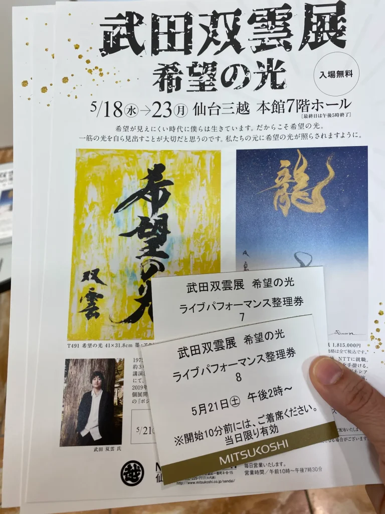 武田双雲さんが控室に向かう途中で握手チャンスがあったのですが、心からのありがとうの気持ちで握手させて頂きました。