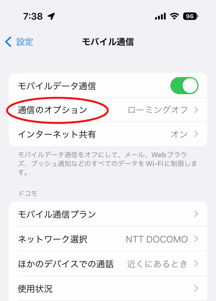 通信オプションを開く
