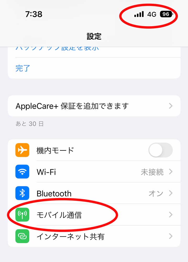 ここまで設定をしても、相変わらず4G通信でした。