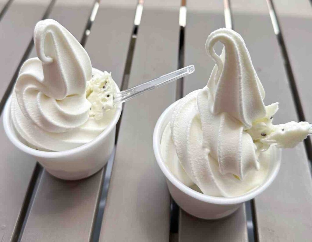 写真だとソフトクリームだけに見えますが、このカップの高さまでのエリアにはチョコミントが入っているんです。