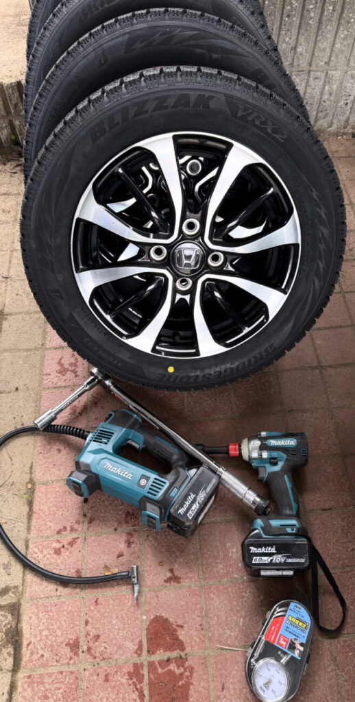 これらの相棒が年二回行うタイヤ交換の頼れる相棒です。30年以上もこの商売だからタイヤ交換の工具類は沢山買い替えてきました。