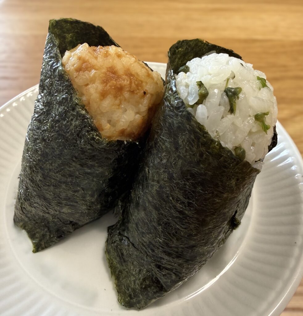 写真左の味噌オニギリの味噌は手前味噌で、材料となる塩も大豆も妻のこだわり。