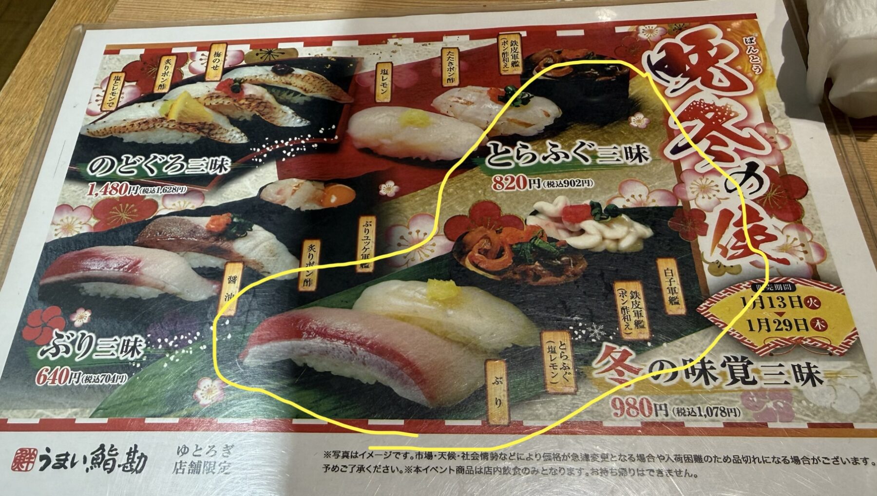 自分が頼んだものと似てたら間違えて食べてしまう場面ですが、大量に作られたハマチでしたので、一目で私のとは違うとわかりました。