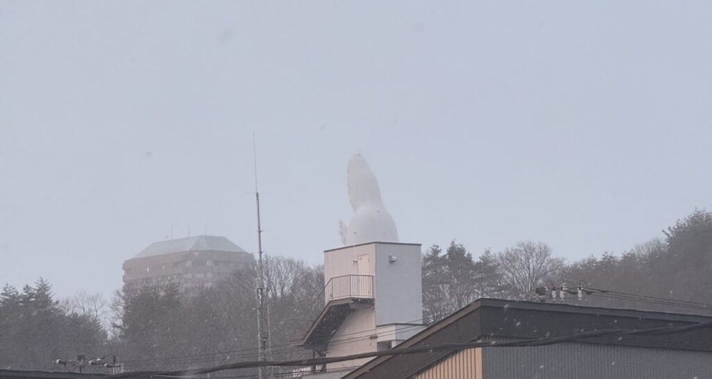 猛烈に降ってきて観音様は見えなくなって来ました