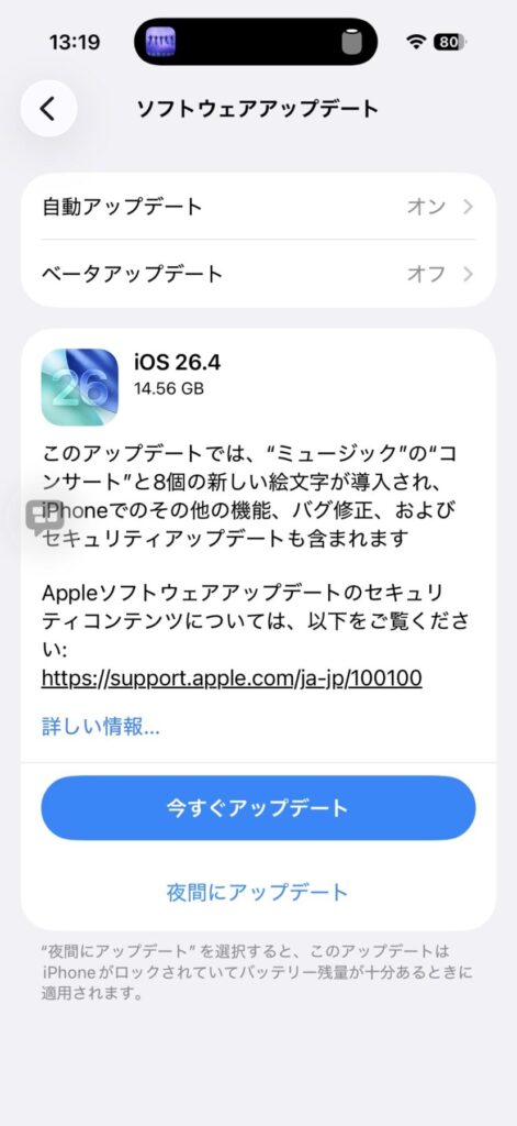 夜にでもアップデートしてみます。