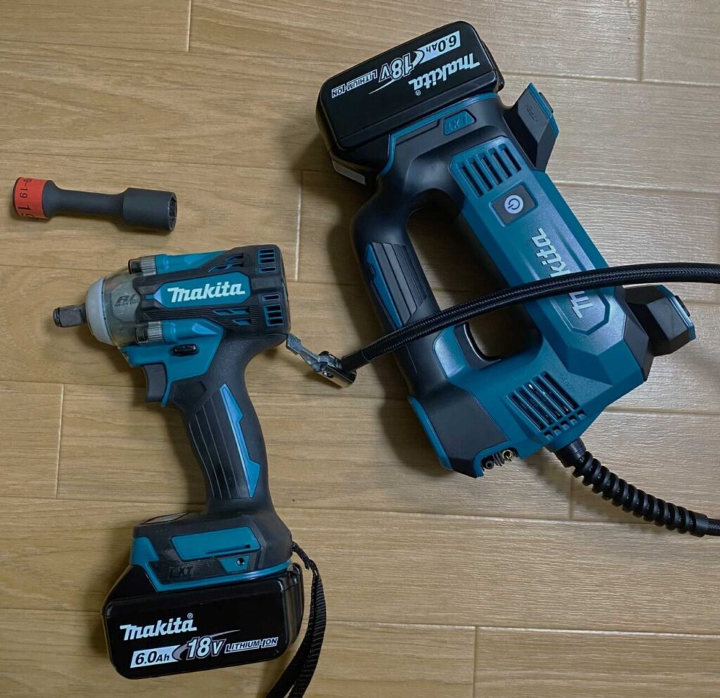 写真はマキタの空気入れとタイヤ用のインパクト。