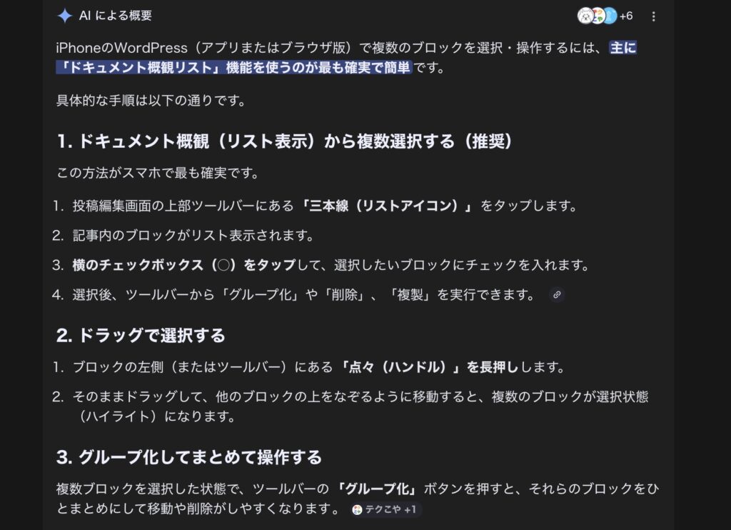もし、読者様の中で、iPhoneのブロックエディタで複数ブロックの選択とか操作とか出来るよと言う方がおられましたら、コメントやメールでアドバイス頂けたら嬉しいです。