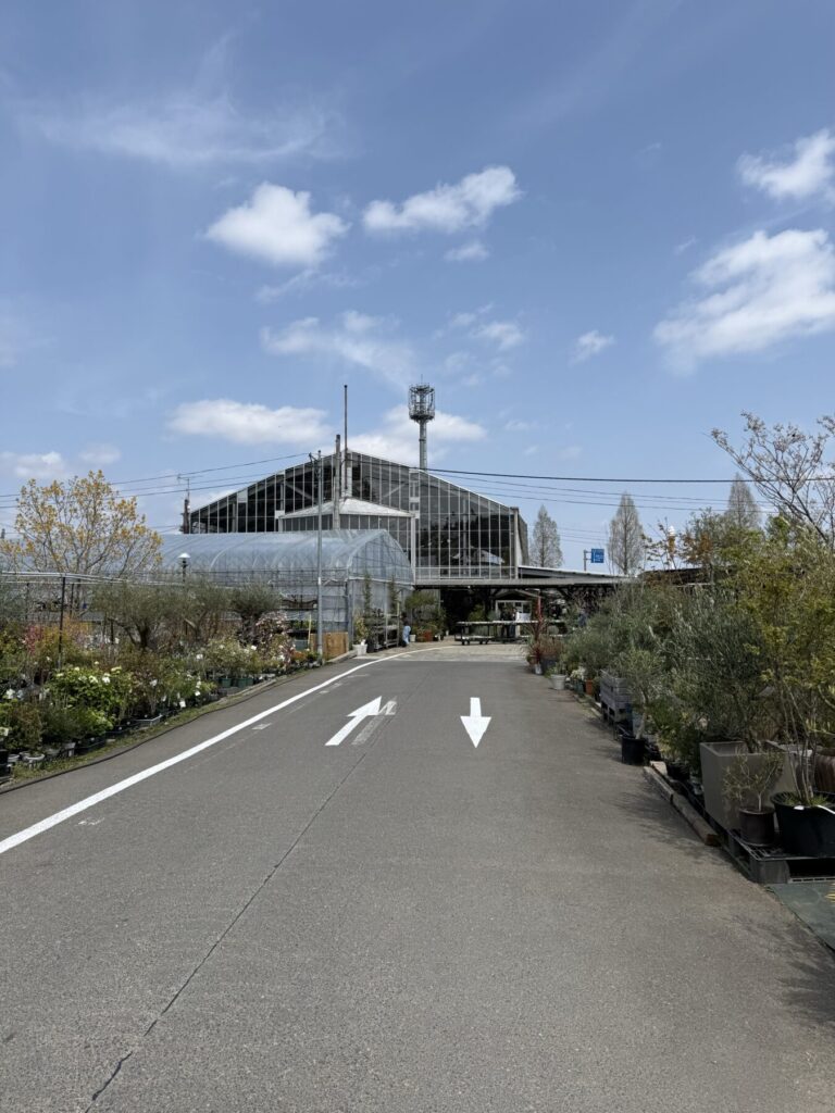 遠い方の駐車場もほぼ満車でした。天気も良いので駐車場から店内までの道のりも楽しい散歩です。青空も綺麗です。